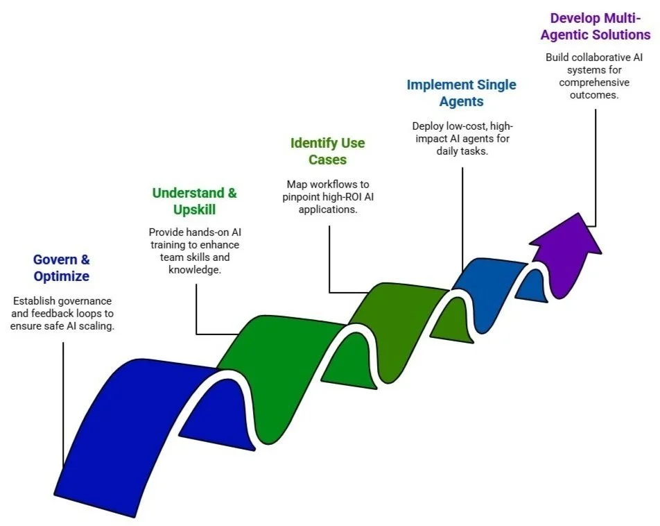 This framework matters because it keeps your AI investments grounded in business value. We help you explore, not just experiment — aligning your team, upskilling employees, and identifying Agentic opportunities that are high-value but low-disruption. That’s how you move from isolated pilots to real outcomes — with momentum, confidence, and ROI that shows up in the bottom line.