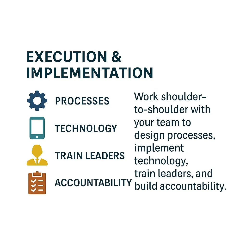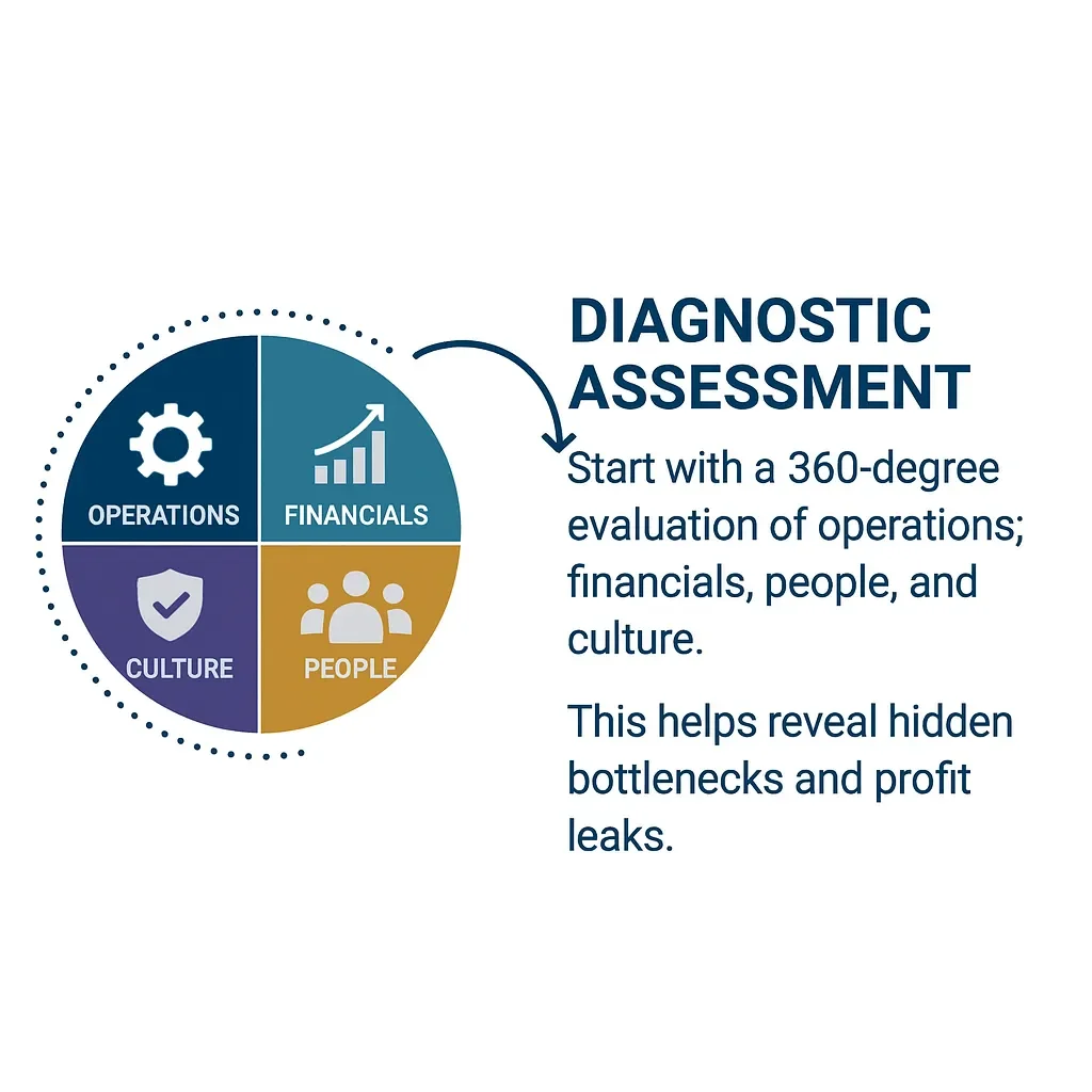 Practical results: Focus on profit improvement, team accountability, and owner freedom. Use client stories or anonymized metrics once available.