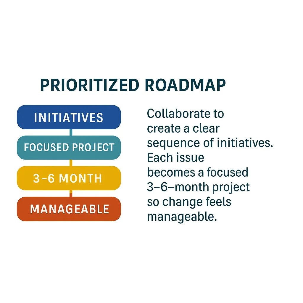 The Roadmap: We will identify systems you need to implement to immediately reduce your daily "firefighting" by 50% and free up at least 10 hours per week.